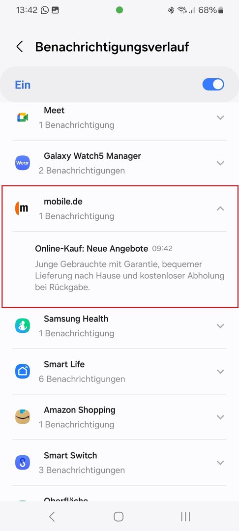Im aktuellen Fall die mobile.de App.