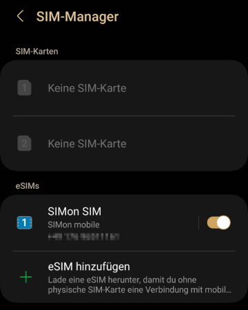 Im SIM-Manager ist diese Karte nicht mehr zu sehen.