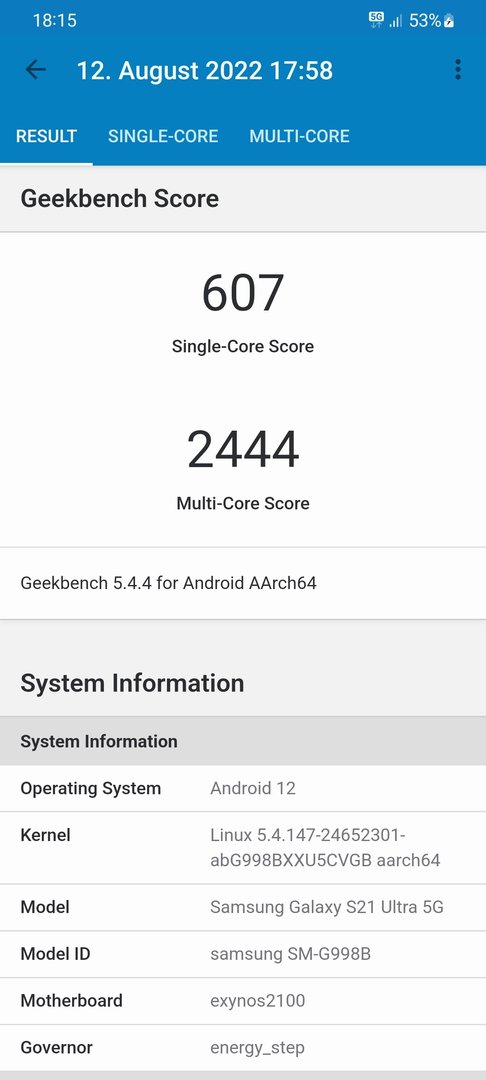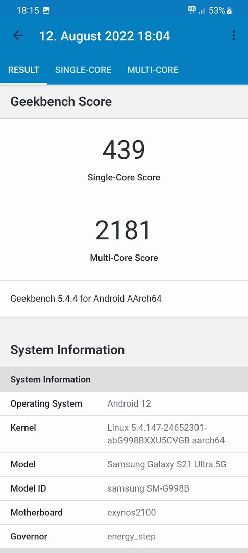 Ich habe im Geekbench mit dem S21Ultra 900/2900 Punkte und beim Antutu 8.3.5 gerade so knappe 550.000 Punkte.