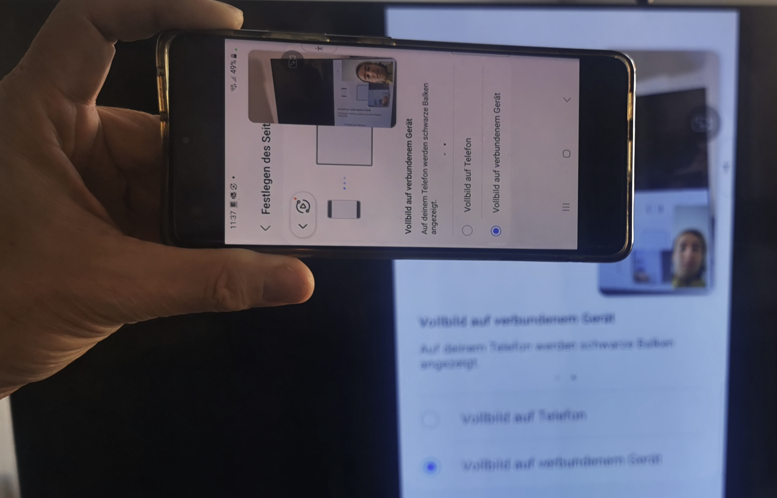 Videotelefonie vom Galaxy S21 Ultra auf dem Fernseher im Querformat?