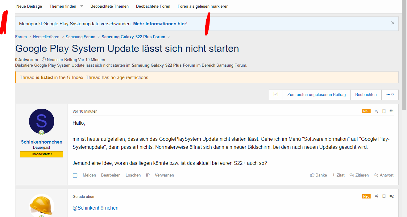 mir ist heute aufgefallen, dass sich das GooglePlaySystem Update nicht starten lässt. Gehe ich im Menü "Softwareinformation" auf "Google Play-Systemupdate", dann passiert nichts. Normalerweise öffnet sich dann ein neuer Bildschirm, bei dem nach neuen Updates gesucht wird.