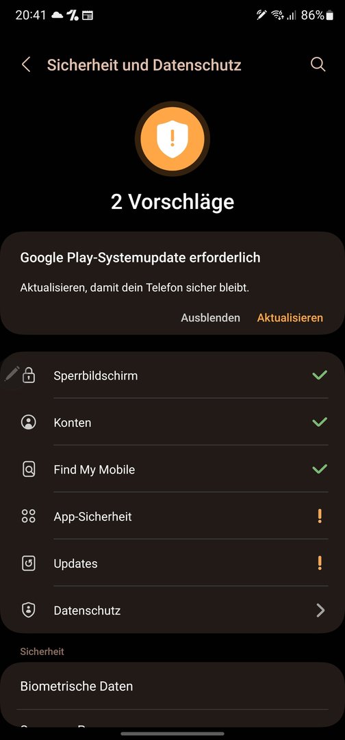 Dein Bemühen in Ehren. Wenn bei Gerätesicherheit ein gelbes Ausrufezeichen wegen fehlender GPSU angezeigt wird (so bei meinem S21FE mit Stand Juli), sollten das die Abnahmetester bei Samsung von allein mitbekommen.Schinkenhörnchen schrieb:Hat den Bug jemand Samsung bereits gemeldet? Ob es jetzt dramatisch ist oder nicht, dass der Fehler besteht, sei dahingestellt, aber er wird erst behoben, wenn Samsung darüber informiert ist.