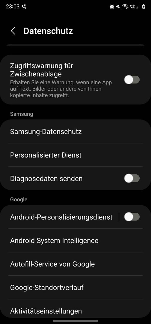- Nearby Share: DISABLED (turn it off again when not in use).