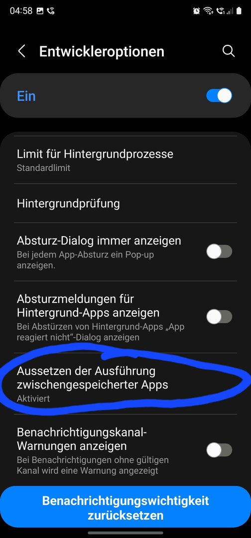 - Suspend execution of Cached apps (under developer options): ENABLED