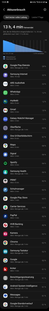 Für mich ist die Laufzeit jetzt auch nicht so berauschend. Mein iPhone Pro Max hätte jetzt bestimmt noch ein paar Prozente mehr Akku gehabt. Aber um sorgenlos durch den Tag zu kommen reicht es bei mir eigentlich immer. Ansonsten wird halt nach der Arbeit nochmal kurz um ein paar Prozent nachgeladen wenn ich weiss ich brauche abends noch viel Akku.