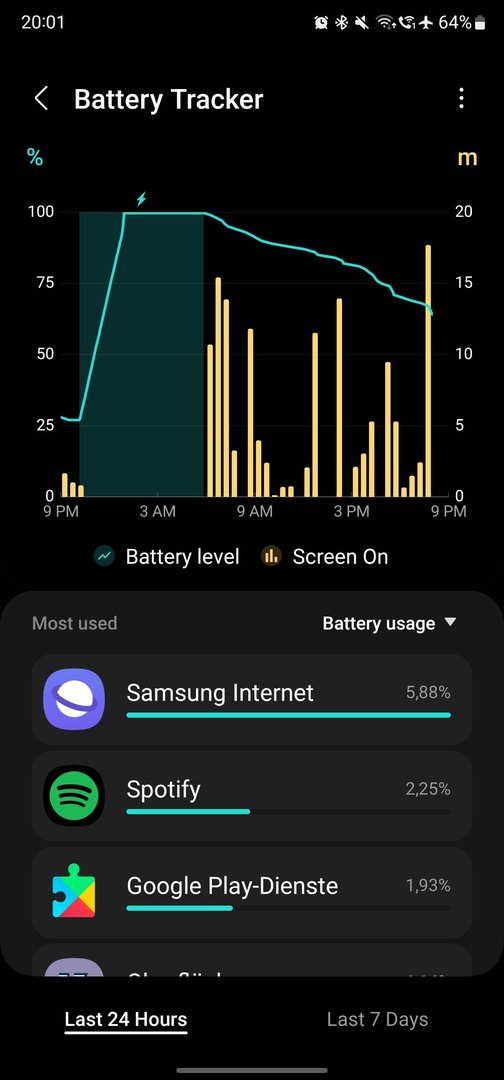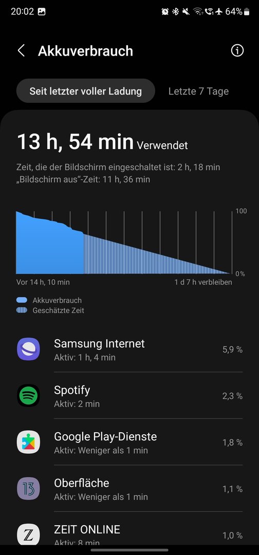 Von der DOT entfallen ca 1h auf mobilen Betrieb als ich unterwegs war, 15 Minuten auf Wlannutzung.