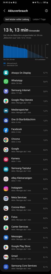 Das kann ich so nicht unterschreiben. Ich habe in Schottland ausschließlich und viel mit dem S22 navigiert, fotografiert (nicht im Baumarkt) und recherchiert und bin dennoch durch den Tag (0730-2200) gekommen (alles per Mobilfunk verbunden ohne Energiesparmodus). Zugegeben war es am Ende meist unter 15% aber immerhin... Es gibt aber auch andere Tage an denen es seltsamerweise knapper wird. Gestern 4h Komoot auf dem Fahrrad (Display dauerhaft ein) und fotografieren/Filmen hat mich schon ziemlich runtergezogen - Abends ca 1800 Uhr musste ich dann bei ca 15% nachladen...