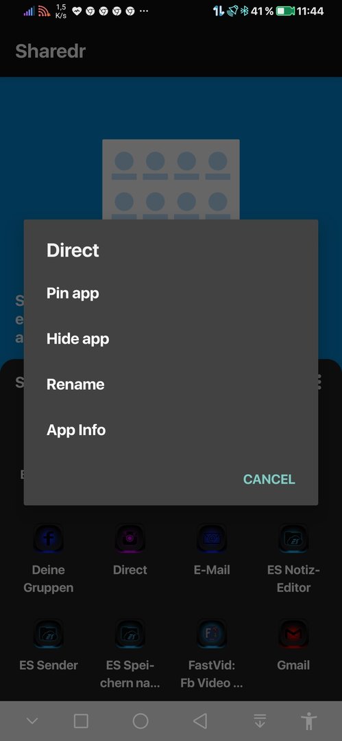 Wenn ich beispielsweise ein Bild teilen möchte, dann kommt ja unten dann eine Auswahl an Apps.