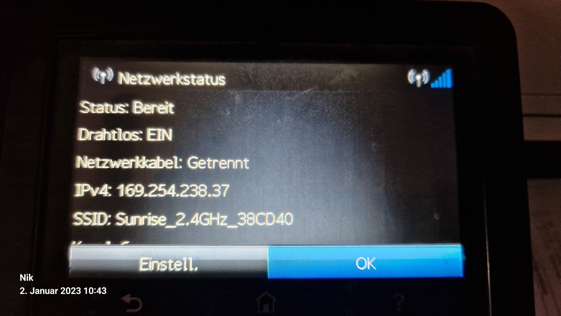Komischer weise finde ich den Drucker im Wlan Netzwerk kann ihn dort auch verbinden. Aber dann habe ich kein WLAN mehr.