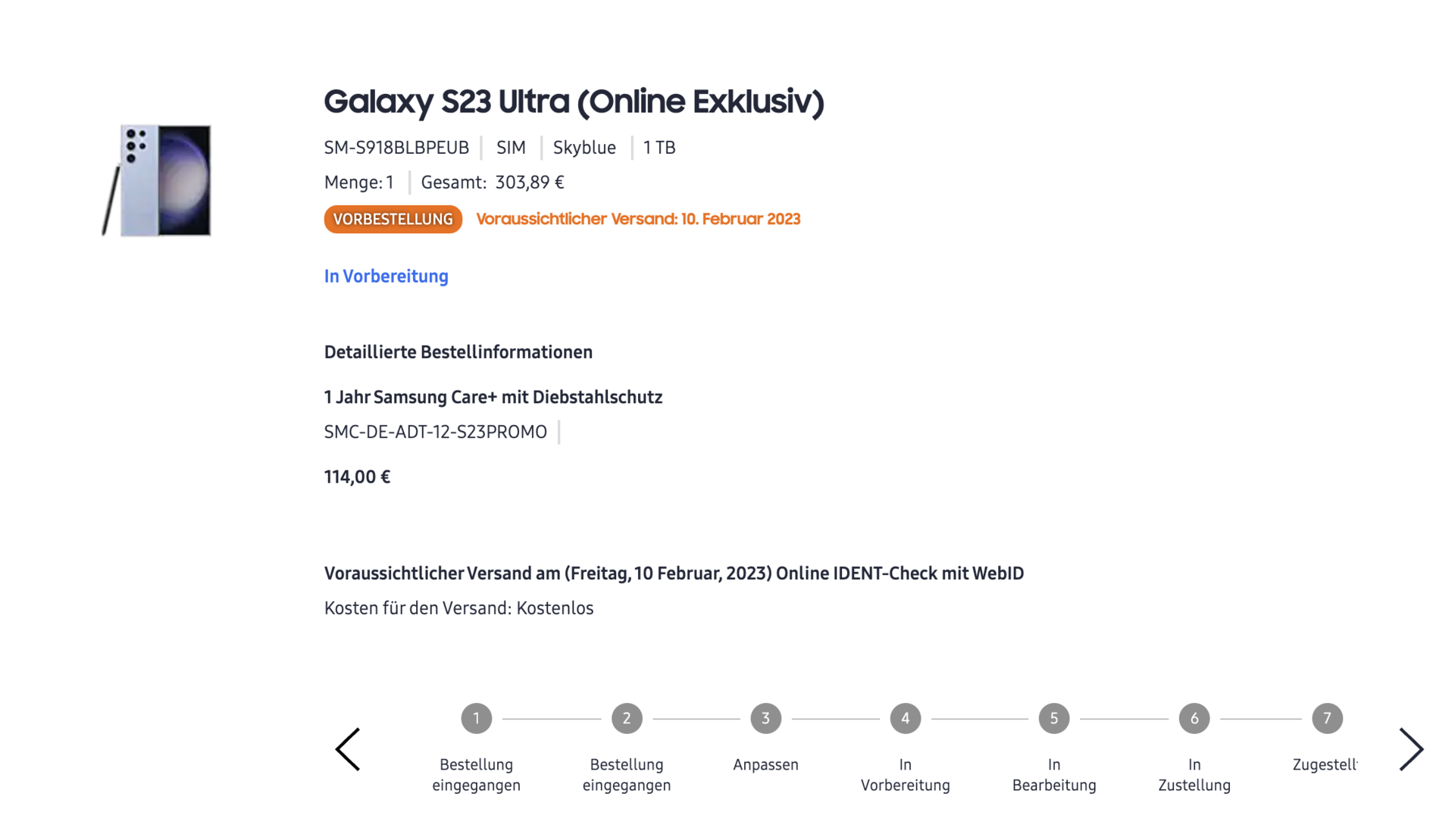 . Bestellt am 01.02. und es kam nur das Crystal Clear Case an. Witzig ist, dass der Vertrag dazu am 10.02. aktiviert worden ist, ich die Mails von o2 bekomme, wahrscheinlich schon dafür zahle, aber die SIM erst mit dem Handy rausgeht.