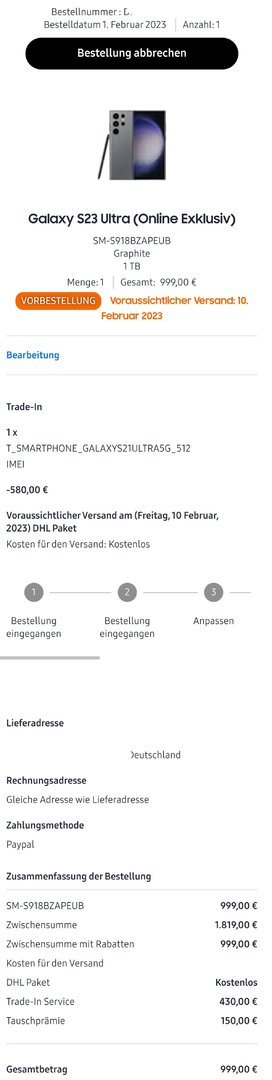 Wann kam die Versand Mail von 1&1 ?Warlock0601 schrieb:So eben auch von GLS meine Bestätigung wird Montag kommen.