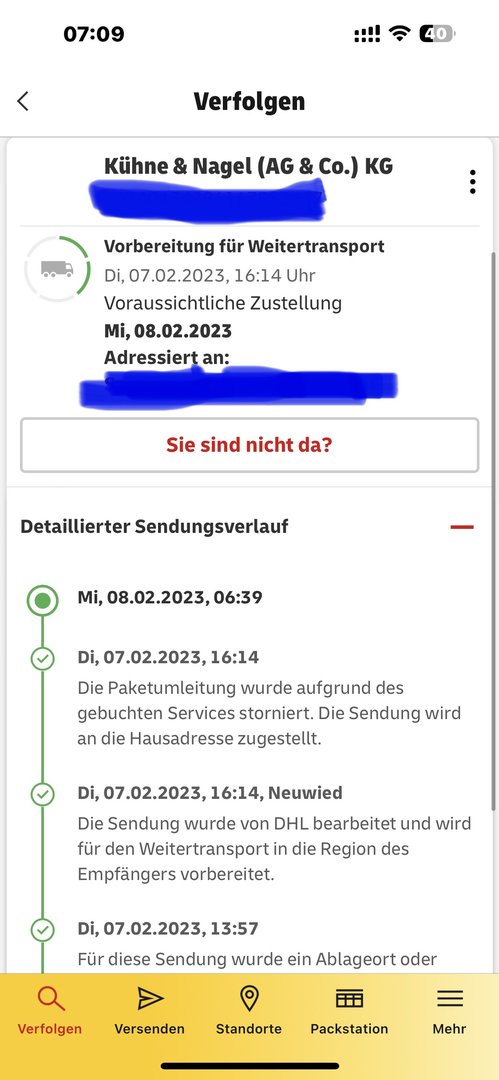 Versand gestern, Zustellung geplant für heute, sofern der Streik daran nichts ändert. Irgendwie spinnt die DHL-App seit heute...
