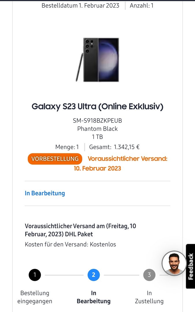 Mein schwarzes S23 Ultra von der Telekom wird wohl morgen mit DHL geliefert.
