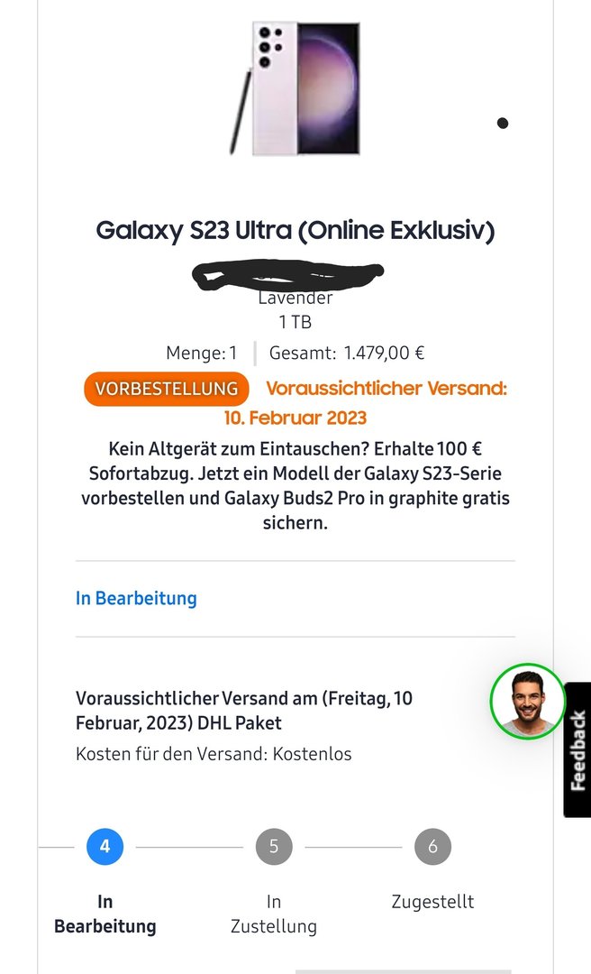 Mal sehen. In Bearbeitung steht bei mir auch noch. Wie geschrieben. DHL muss ja auch noch mitspielenPredator74 schrieb:Am 2.2. auch das Graphite 512 GB bestellt und noch nicht in Bearbeitung bei mir..:-( Buds sind allerdings schon da.