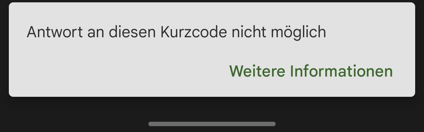 In der App blinkt und verzerrt die Meldung : Antwort an diesen Kurzcode nicht möglich.