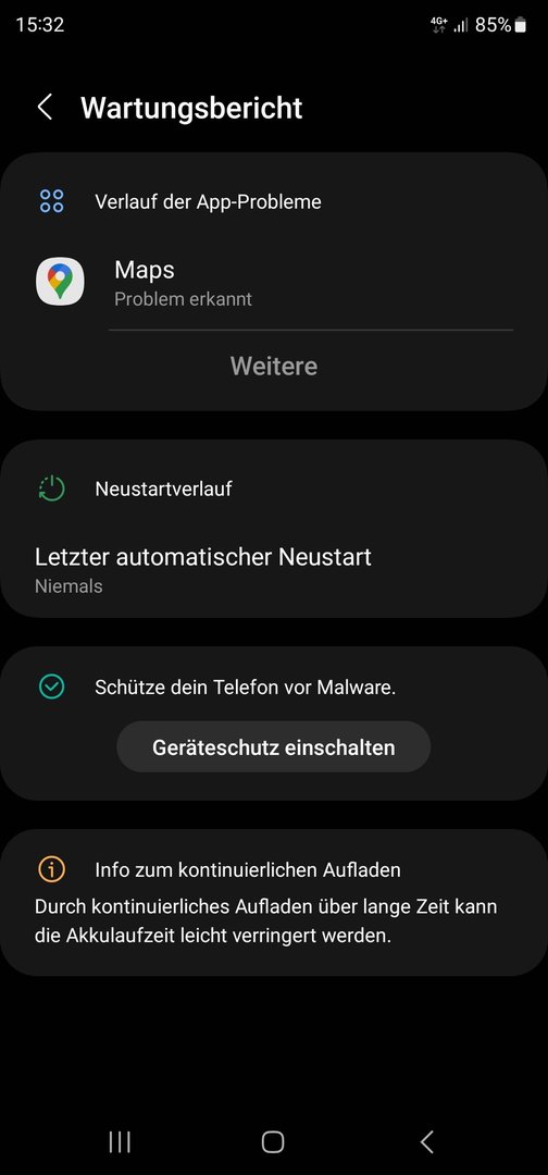 Nun zu meinen Problem, Maps erscheint danach immer der Gerätewartung mit App Problem erkannt. Weiterhin kommt auch oft der Gerätewartung die Warnung häufige aktivierungen. Was kann ich dagegen tun?
