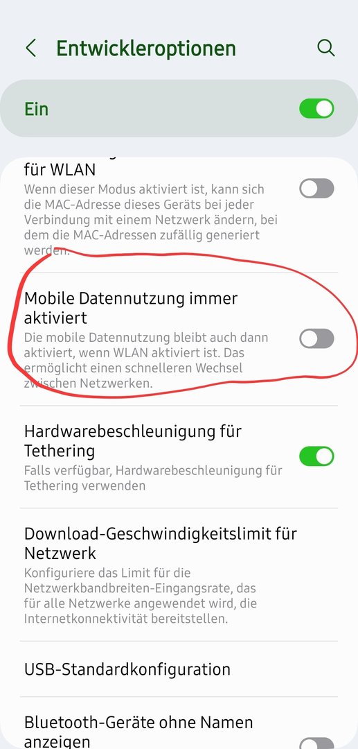 Ich habe im Handy unter den Einstellungen auch den " intelligenten Netzwerkwechsel" eingeschaltet. Wenn ich nun im Auto unterwegs bin dachte ich, dass das Handy erkennt: "Keine Daten übers WLAN verfügbar, ich wechsle jetzt zu den mobilen Daten "...