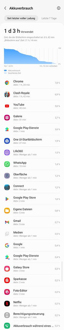 Bei mir ist wohl irgendwie der Wurm drin. Heute Nacht 10 Prozent Akkuverlust in sechs Stunden, gestern waren es 11 Prozent in sieben Stunden. Mein iPhone 13 Pro hat direkt daneben gelegen und hatte jeweils nur einen Prozent Akkuverlust.
