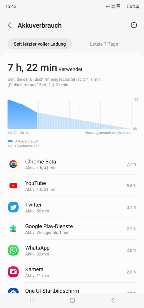 Hatte es gegen 21:30 bei 85% vom Charger genommen und bin mit 57% im Bett gelandet.
