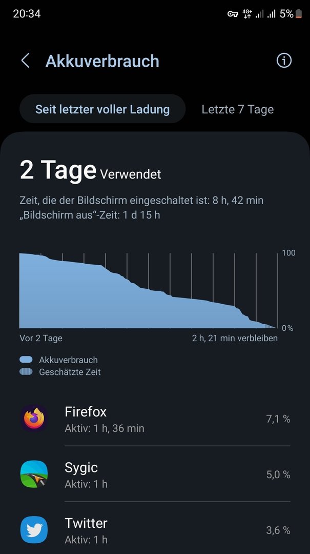 hat ordentlich verbraucht, kam mit dieser Ladung allerdings knapp 3h 30min hin. Habe es dann am gleichen Abend (Freitag) geladen (100%), das nächste mal war Montags früh, also gute 2 Tage