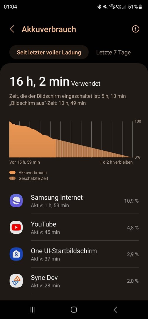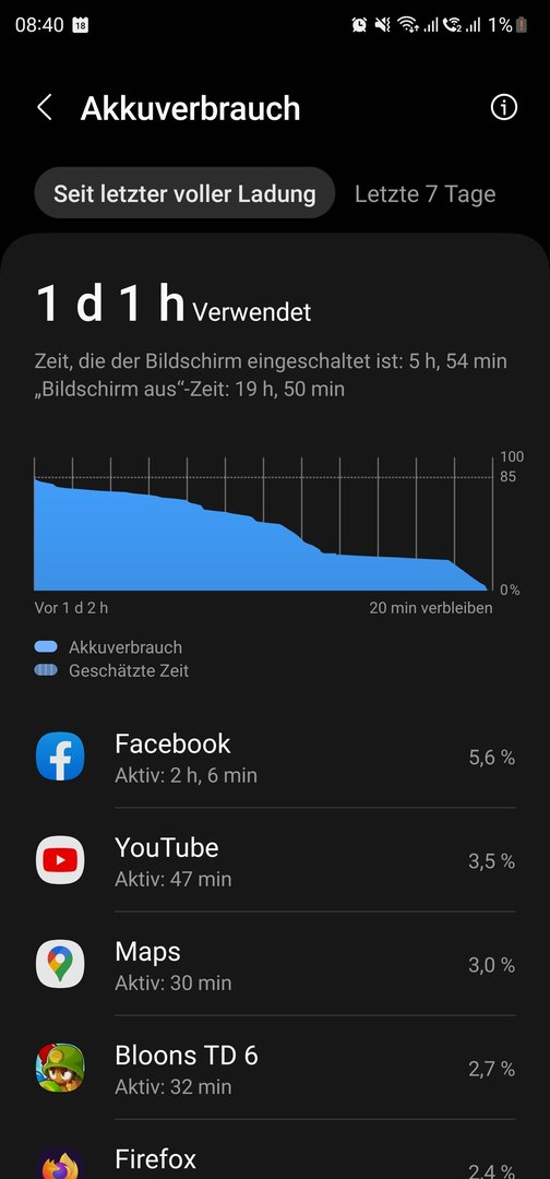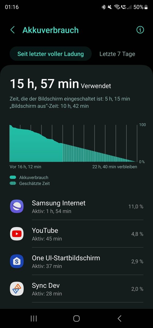 Da stimmt doch was nicht... Habe bei 1std Screen On Time noch ca. 90%991driver schrieb:Fast ausnahmslos wird die Akkulaufzeit gelobt, allerdings bin ich nicht so begeistert.