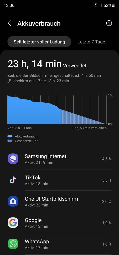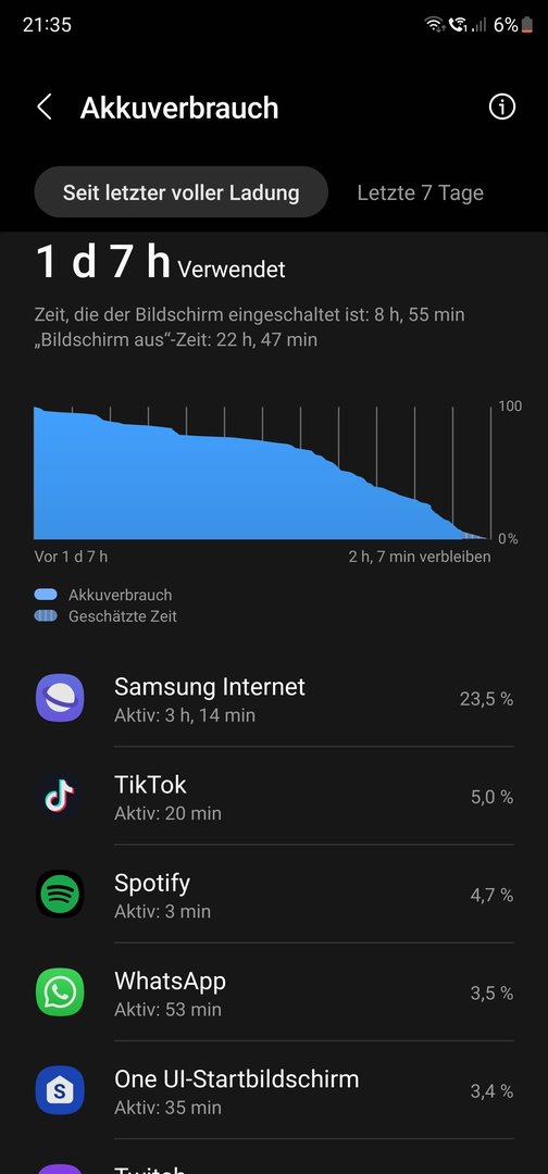 Habe die Ladung davor ein etwas hohen Standby Verbrauch gehabt aber das hat sich wieder gefangen.