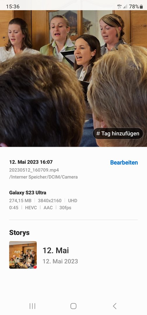 Hallo Leute habe ein S23 Ultra ein Video aufgenommen in 4K. Auf Notebook übertragen.