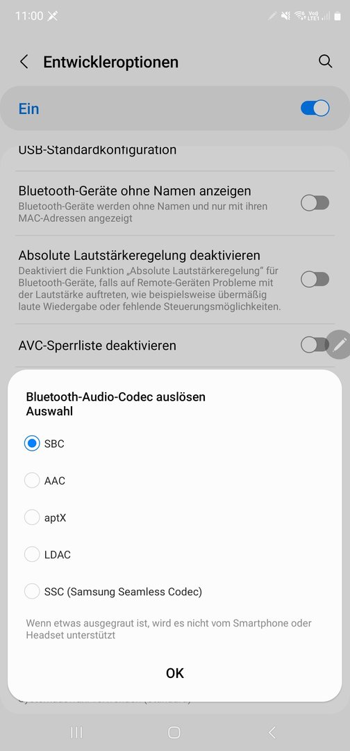 Auf der Samsung-Website finde ich keine Informationen über die unterstützen Bluetooth-Codecs.