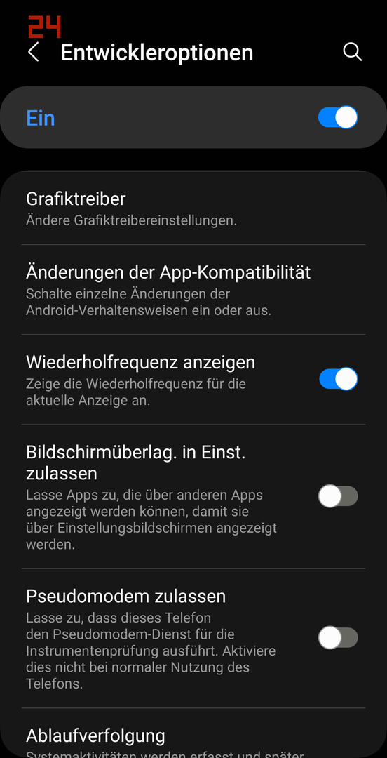 Man kann in den Entwicklermodus die Bildwiederholrate einschalten (dann erscheint die oben links)