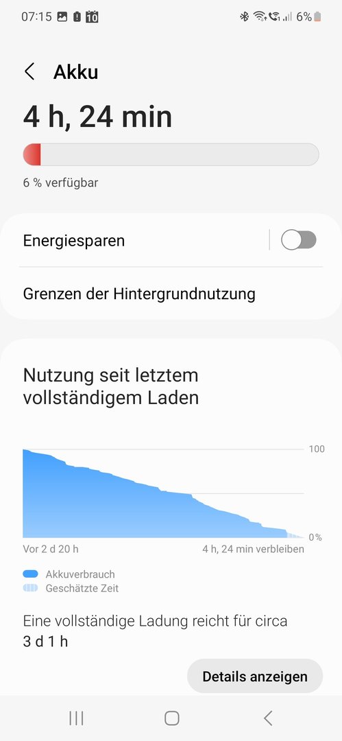 Meins (S22 SD) geht von 120 auf 24 runter