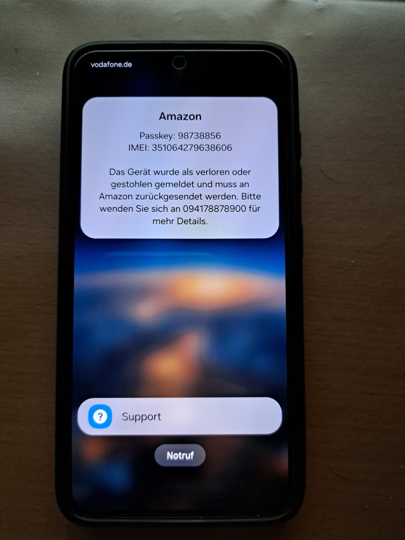 Habe gerade an meinem S23 im I-Net gesurft als plötzlich der Bildschirm gesperrt wurde. Es erscheint ein Hinweis von Amazon, dass das Gerät als verloren oder gestohlen gemeldet wurde und ich mit mit Amazon in Verbindung setzten soll. Die können mir aber nicht weiterhelfen! Das S23 habe ich vor 2 Monaten über kleinanzeigen gekauft. Es war neu und Original Verpackt ( angeblich aus einer Vertragsverlängerung ). Hab mir vorab die IMEI geben lassen und diese überprüft - alles OK. Auch gerade eben noch war die Prüfung negativ.