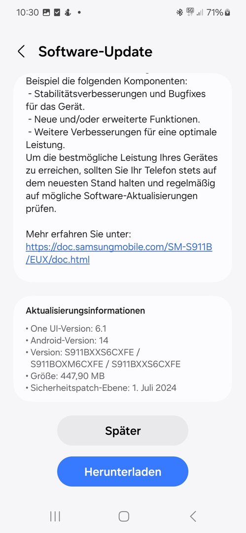 Juli 2024 Update (CXFE) für das Galaxy S23 ist da - Größe 447 MB