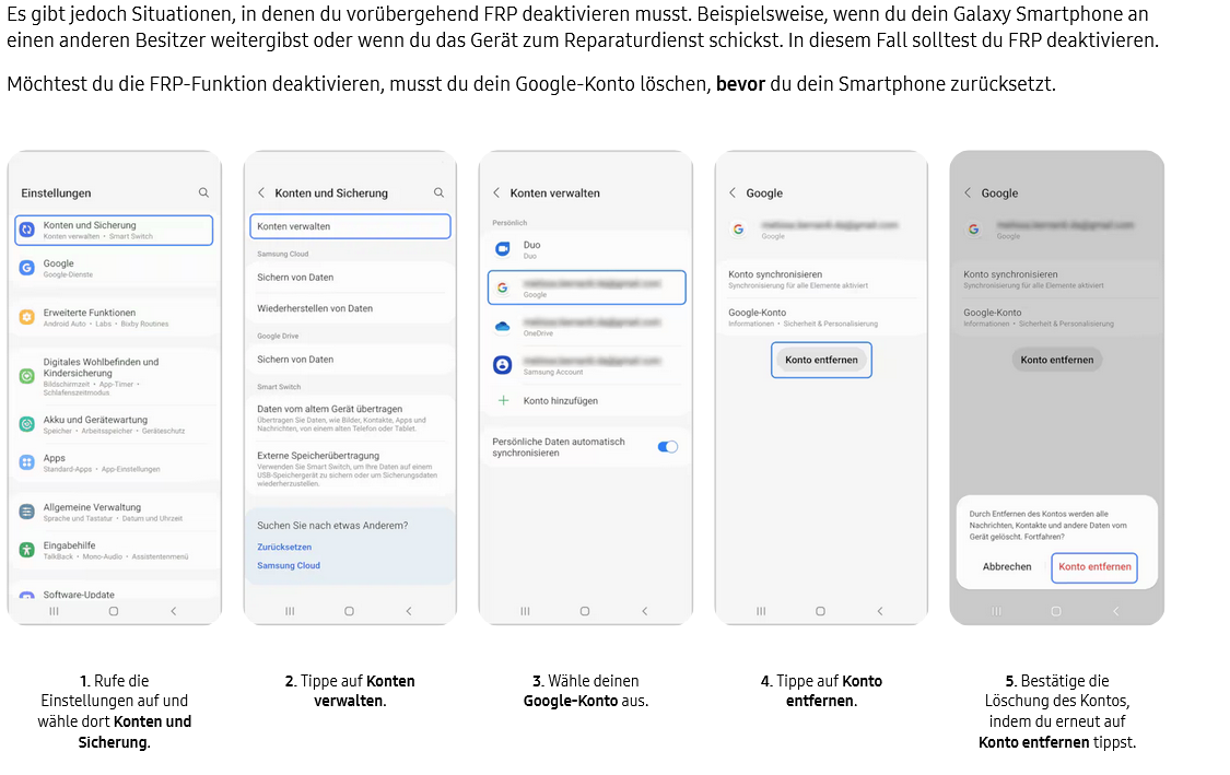 In Wirklichkeit passiert es leider trotzdem. Siehe Beiträge hier. Dann hast du den Salat. Weil man verlässt sich ja drauf was geschrieben wird von Samsung Google und Co auf der Support Seite, dann meldet sich der neue Besitzer und hat die Diskussion.