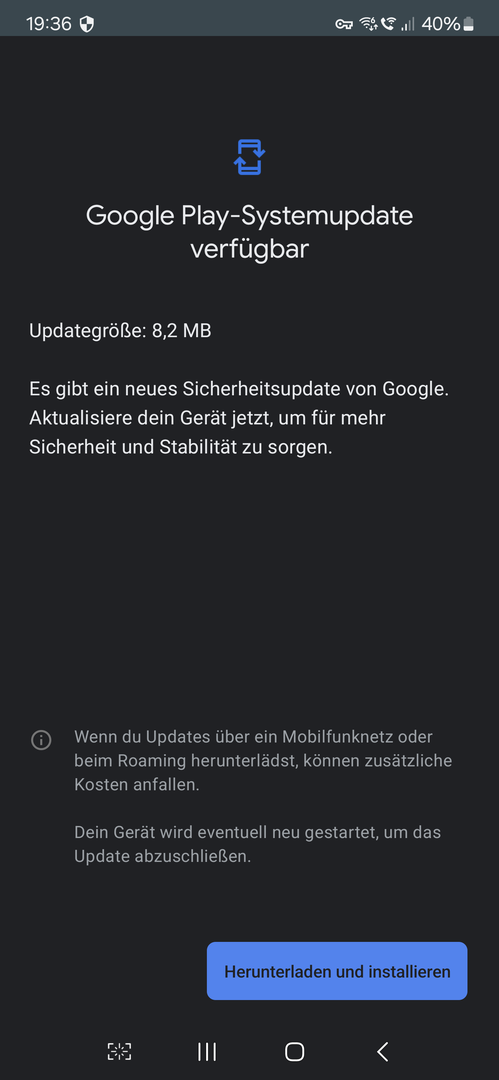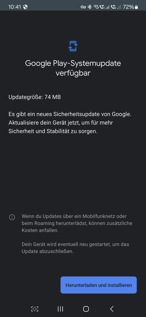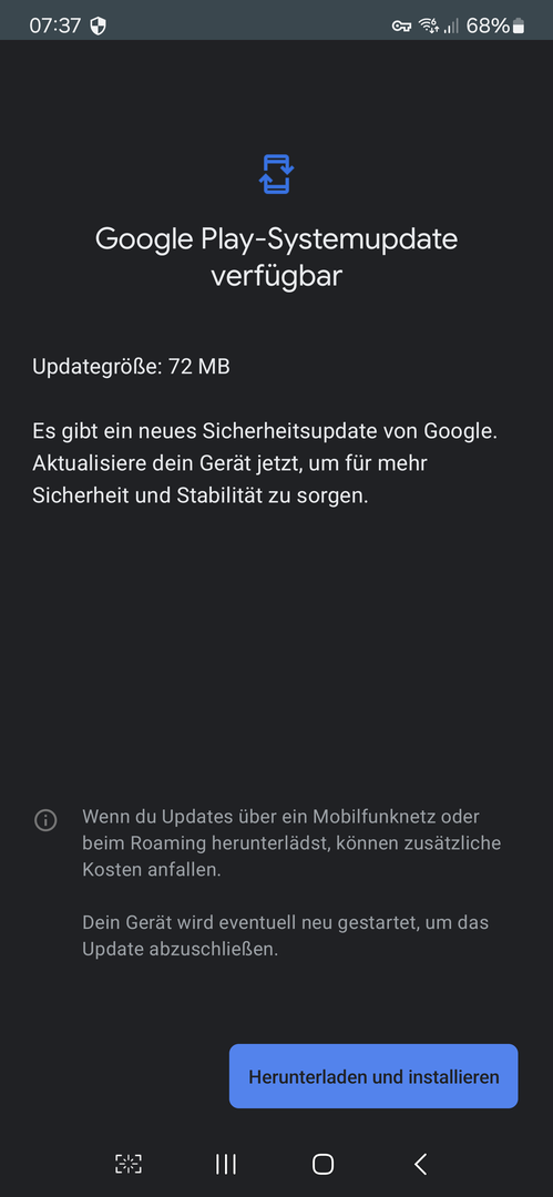 Google Play Systemupdates beim Galaxy S24 Plus (Stand Januar)