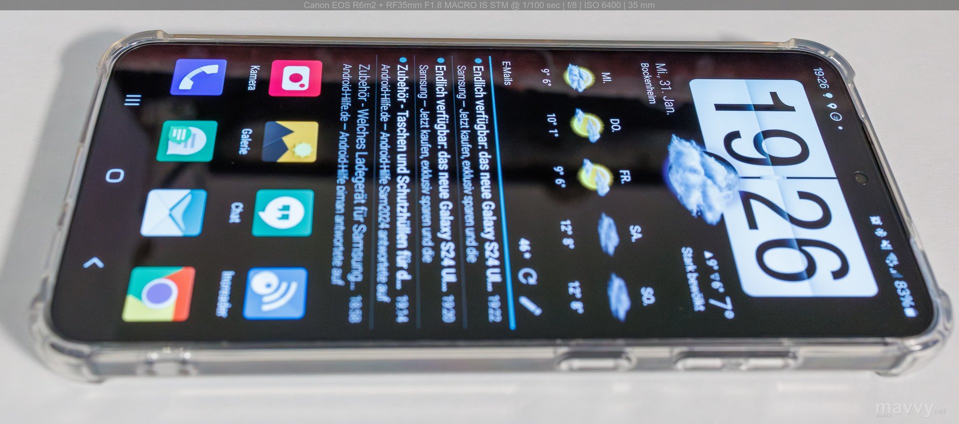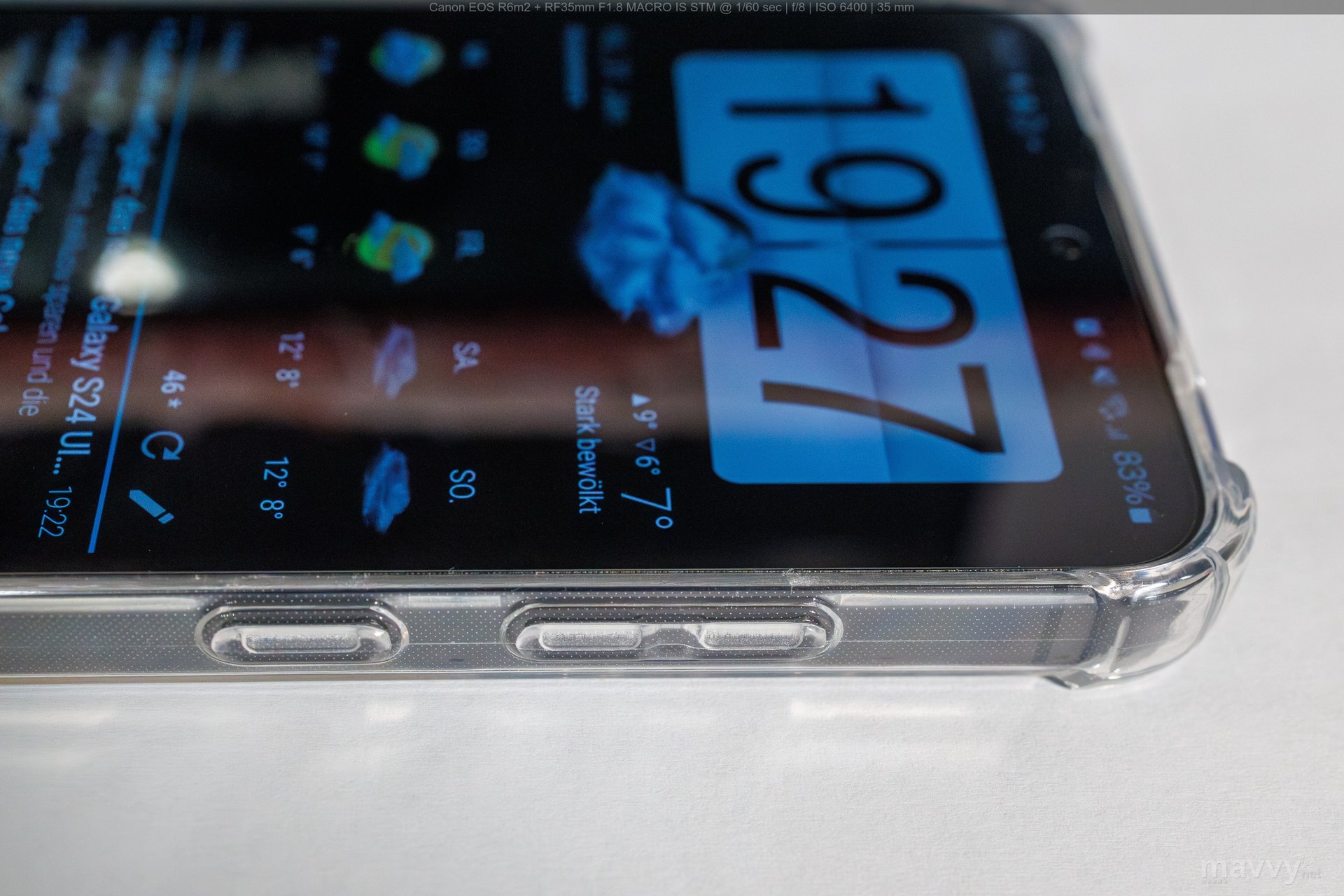 Hier nochmal Fotos mit der iVoler Hülle für das S24+, die sich im Gegensatz zur Hochuen tatsächlich "dünner" in der Hand anfühlt.