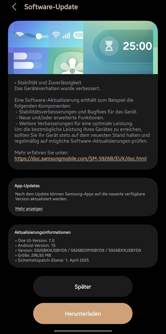Update S926BXXU5BYD9 - Sicherheitspatch April für das S24+ mit OneUI 7 / Android 15 ist da