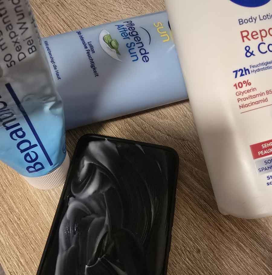 Nur mit einem feuchten Tuch.