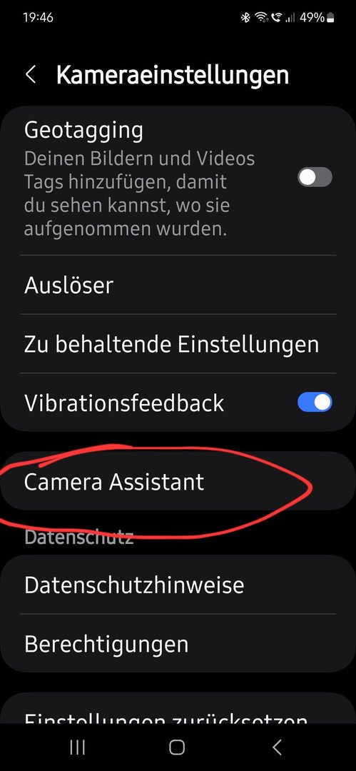 Ich meine den Camera Assistant, der sich nach Installation ins Menü der Kameraeinstellungen integriert. Hab zwar das S23, sollte aber beim S24U auch so sein.