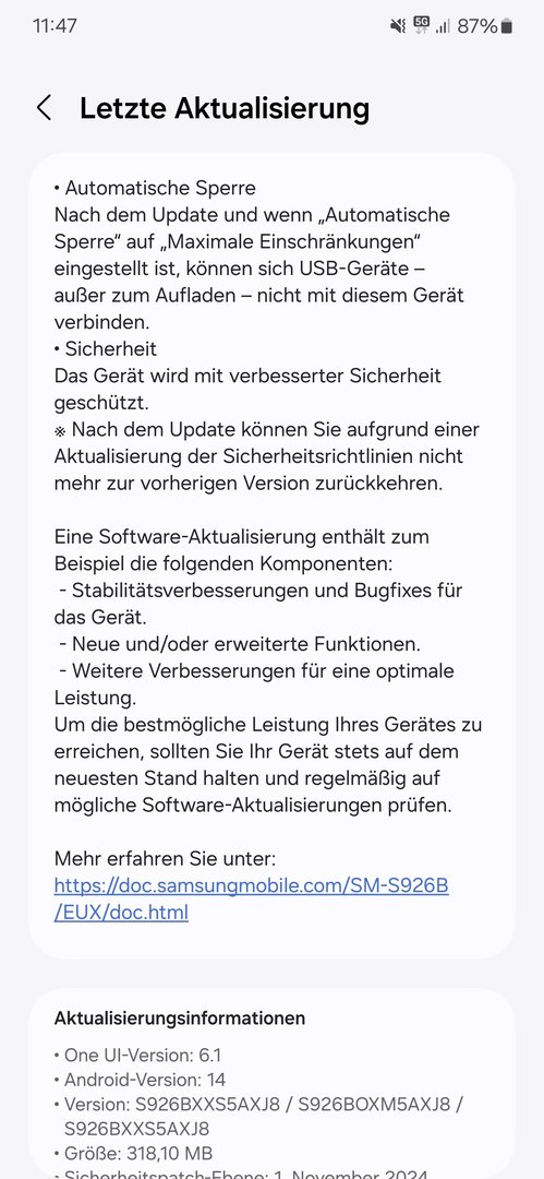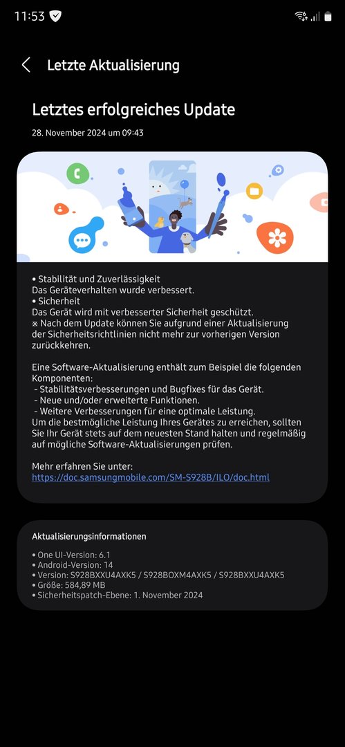 Anderer changelog als bei den S24er die den November Patch Anfang des Monats bekommen haben. Da stand zb noch eine Veränderung der automatischen Sperre drin. Das verbesserte Geräteverhalten stand hingegen nicht drin.