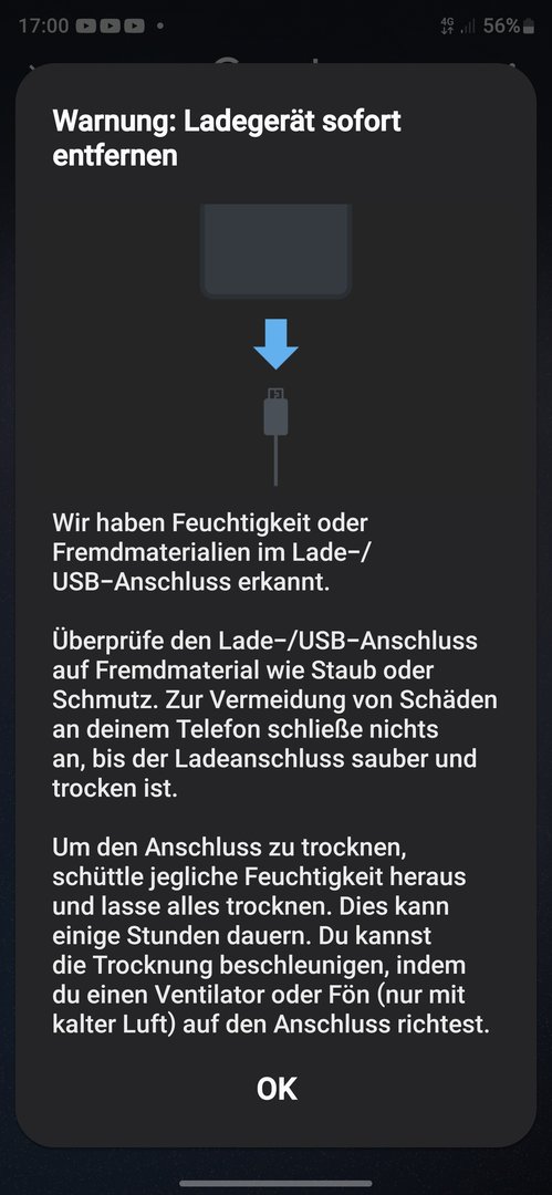 Nach 5 Monaten neuem Galaxy S24 Ultra, kommt permanent diese Fehlermeldung. Ich habe alles versucht, alles ist sauber und keine Feuchtigkeit. Kabels ausgetauscht, etliche Neustarts + Update. Wenn ich Glück habe, lädt er zufällig wie immer. Man könnte sagen von vielleicht so 50 mal probieren mit Neustart usw. lädt er ganz normal. Wenn ich aber den Stecker kurz rauziehe und gleich neu einstecke, ist das Problem wieder da. Es ist wie Russisch Roulette...