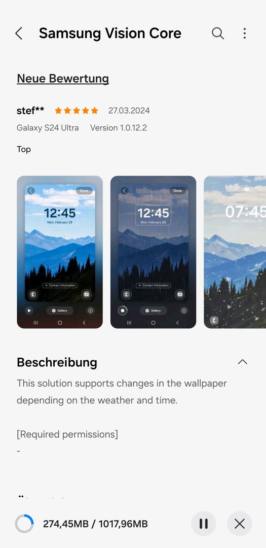 • Samsung hat ein umfangreiches Update für seine Vision Core-App veröffentlicht, das die Wettereffekte auf dem Sperrbildschirm-Hintergrund des Galaxy S24, S24+ und S24 Ultra verbessert.