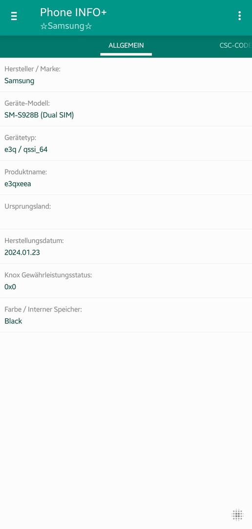 Es ist das Hestellungsdstum ausgelesen mit Samsung Info