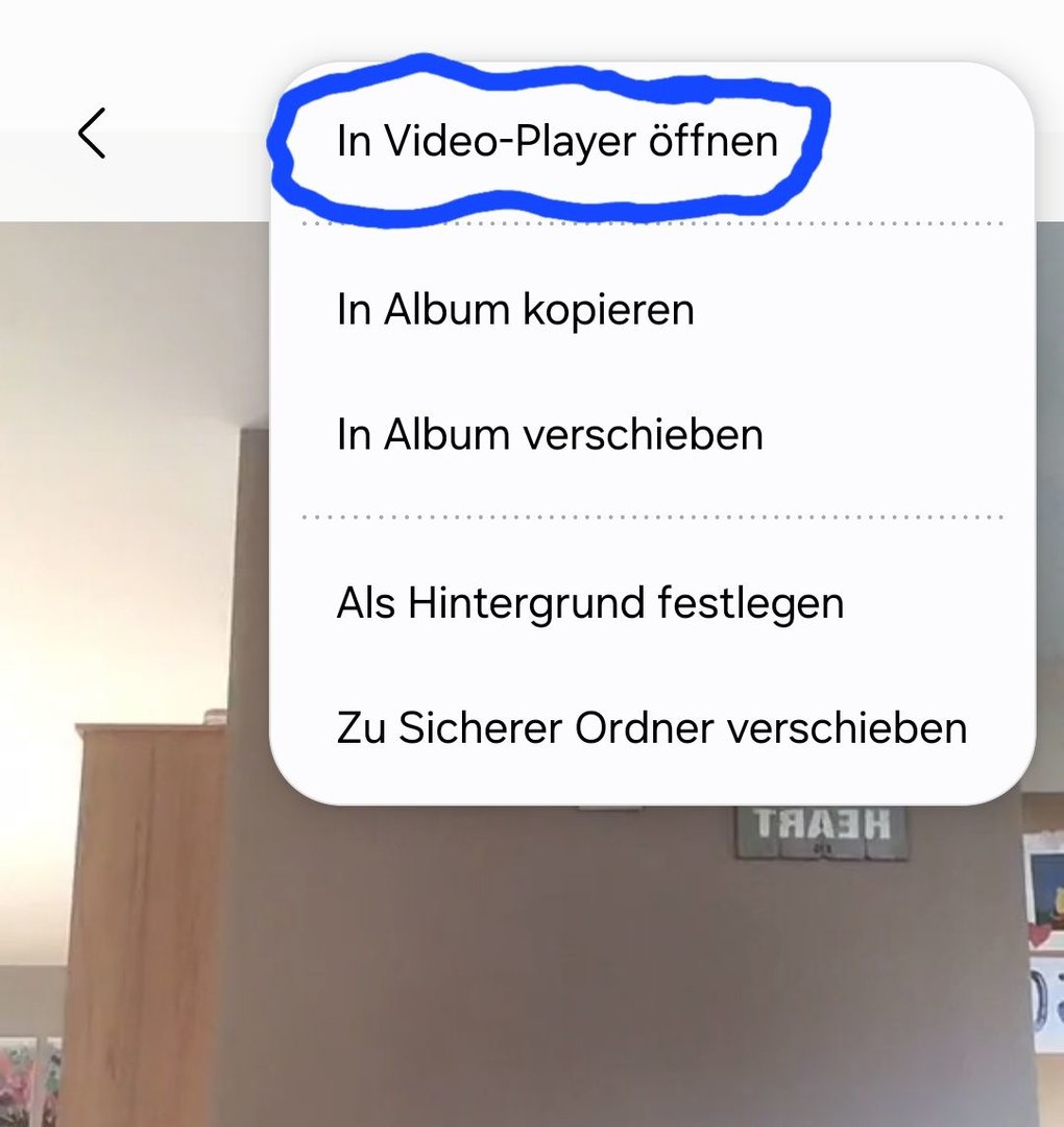 Beim S24 ist es nur über das Menü möglich den Video-Player zu öffnen.