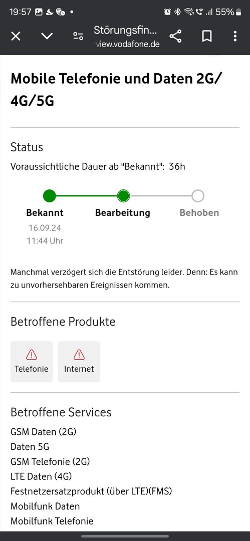 In der Störungsanzeige steht auch, dass 2G, 4G und 5G von den Wartungsarbeiten gestört sind. Sowie mobile Daten und Telefonie.maik005 schrieb:@SF-Pille
