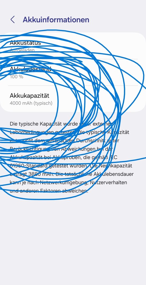 ja und schön das kleingedruckte unscheinbar gemacht, wo die Mindestkapazität von 3.890 mAh eines neuen Akkus erwähnt wirdmarcodj schrieb:Doch die sieht man sogar in deinem eigenen Beitrag #17 und hier dein Bild extra nochmal hier eingefügt und eingekreist.