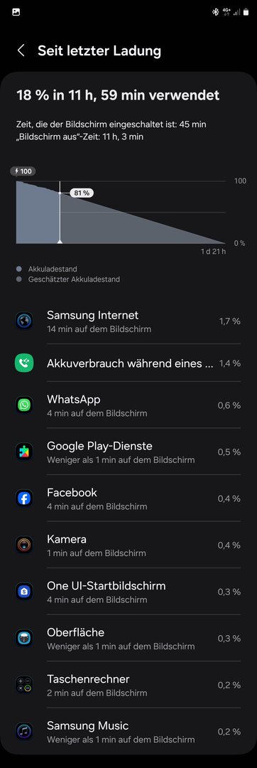 Den ganzen Tag mobile Daten, Bluetooth und GPS an und mit watch verbunden.