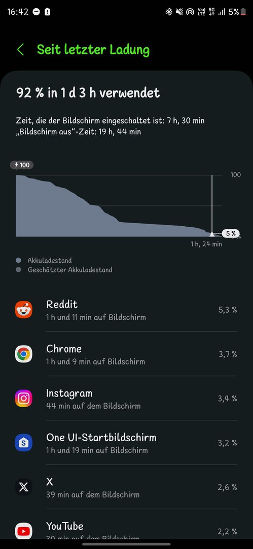 Ich habe mal spaßeshalber WLAN komplett ausgeschaltet und war nur im Mobilfunknetz. Davon ca. 4 Stunden unterwegs und auch aktiv benutzt.