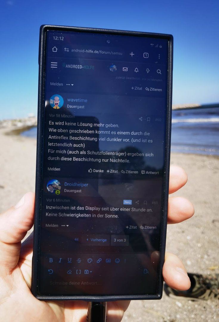 Ich hatte im Urlaub aber auch keine Problem wegen der Sonne und abdunkeln (S23+/S24+) ich halte das Gerät aber auch nicht so das die pralle Sonne immer direkt auf das Display/Sensor trifft.