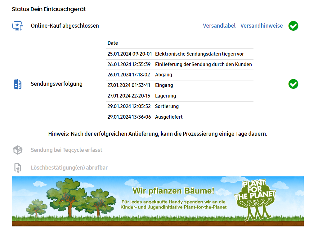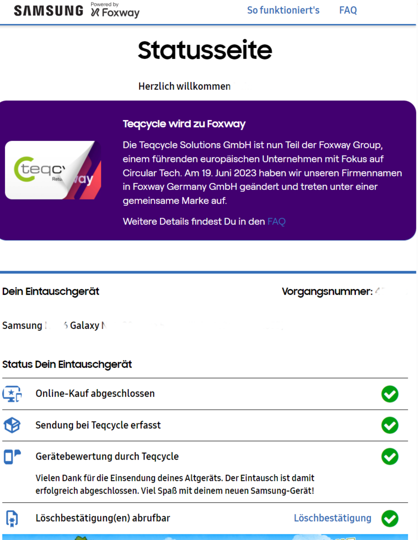 innerhalb von drei (3) Tagen nach Erhalt des Aktionsgeräts eine E-Mail von