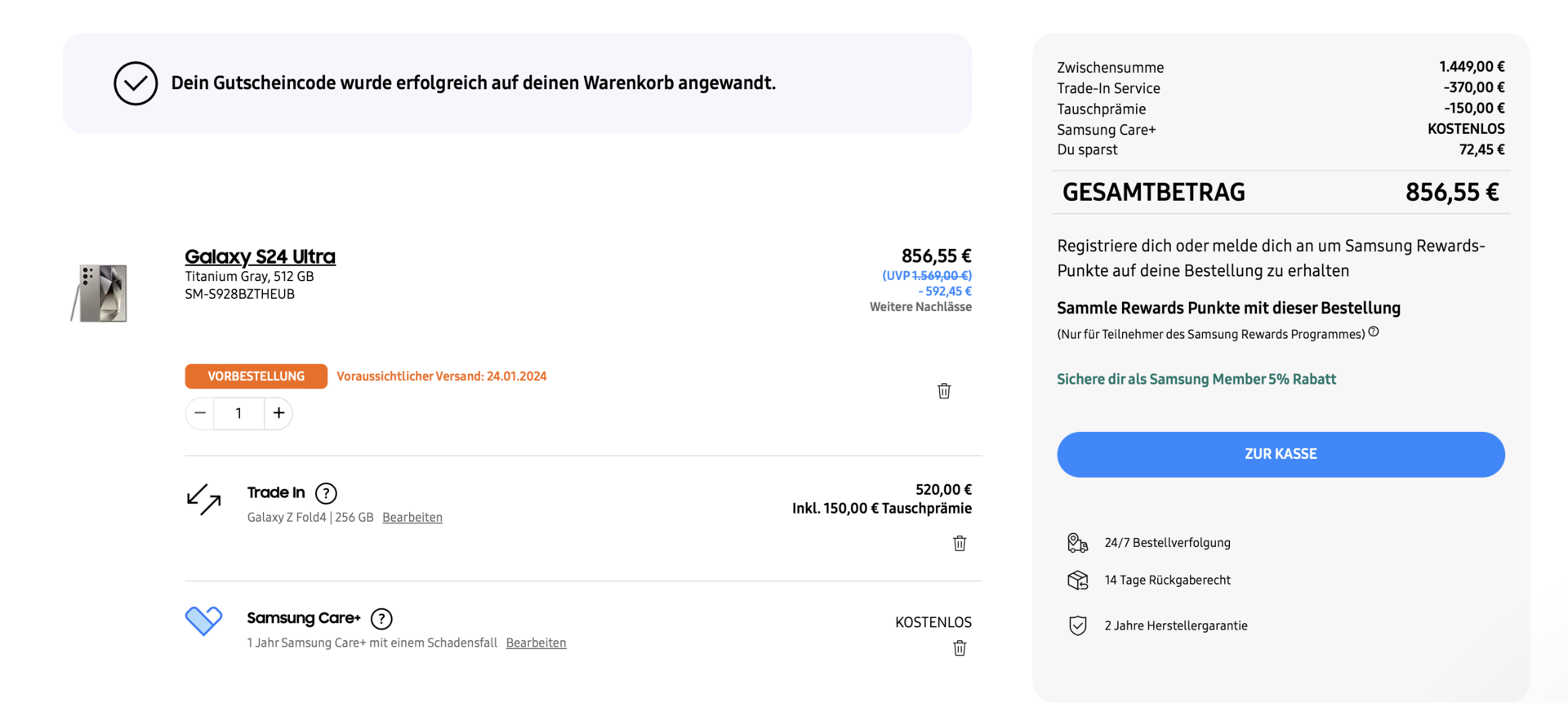 1 Jahr Samsung Care+ mit einem Schadensfall Kostenlos